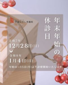早いもので、今年もあとわずかとなりました。本年も多くの皆さまにご来院いただき、誠にありがとうございました。皆さまの笑顔が、私たちスタッフ一同の大きな励みとなっています😊
